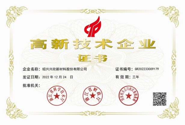 紹興興欣新材料股份有限公司成立于2002年06月27日,占地面積122畝,位于杭州灣上虞經(jīng)濟(jì)技術(shù)開發(fā)區(qū)拓展路2號(hào),現(xiàn)有職工200余人,專業(yè)技術(shù)人員50余人;博士、碩士研究生30余人組成的一支知識(shí)型、專業(yè)化的技術(shù)科研團(tuán)隊(duì)。公司面向全球市場,專業(yè)開發(fā)電子化學(xué)品、環(huán)保化學(xué)品、醫(yī)藥中間體、高分子材料等先進(jìn)新材料重點(diǎn)領(lǐng)域的省級(jí)科技型企業(yè);建有浙江上虞、安徽東至兩個(gè)生產(chǎn)基地。目前為“國家高新技術(shù)企業(yè)”、浙江省“隱形冠軍”企業(yè)、浙江省專精特新中小企業(yè);建有“省級(jí)”研究開發(fā)中心,共建天津大學(xué)浙江紹興研究院電子化學(xué)品研發(fā)中心。